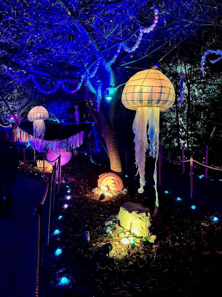 The thousands of plants, bushes and trees in the gardens – home to a national collection of hellebores – are subtly illuminated to create a fairytale atmosphere, but that’s just for starters.