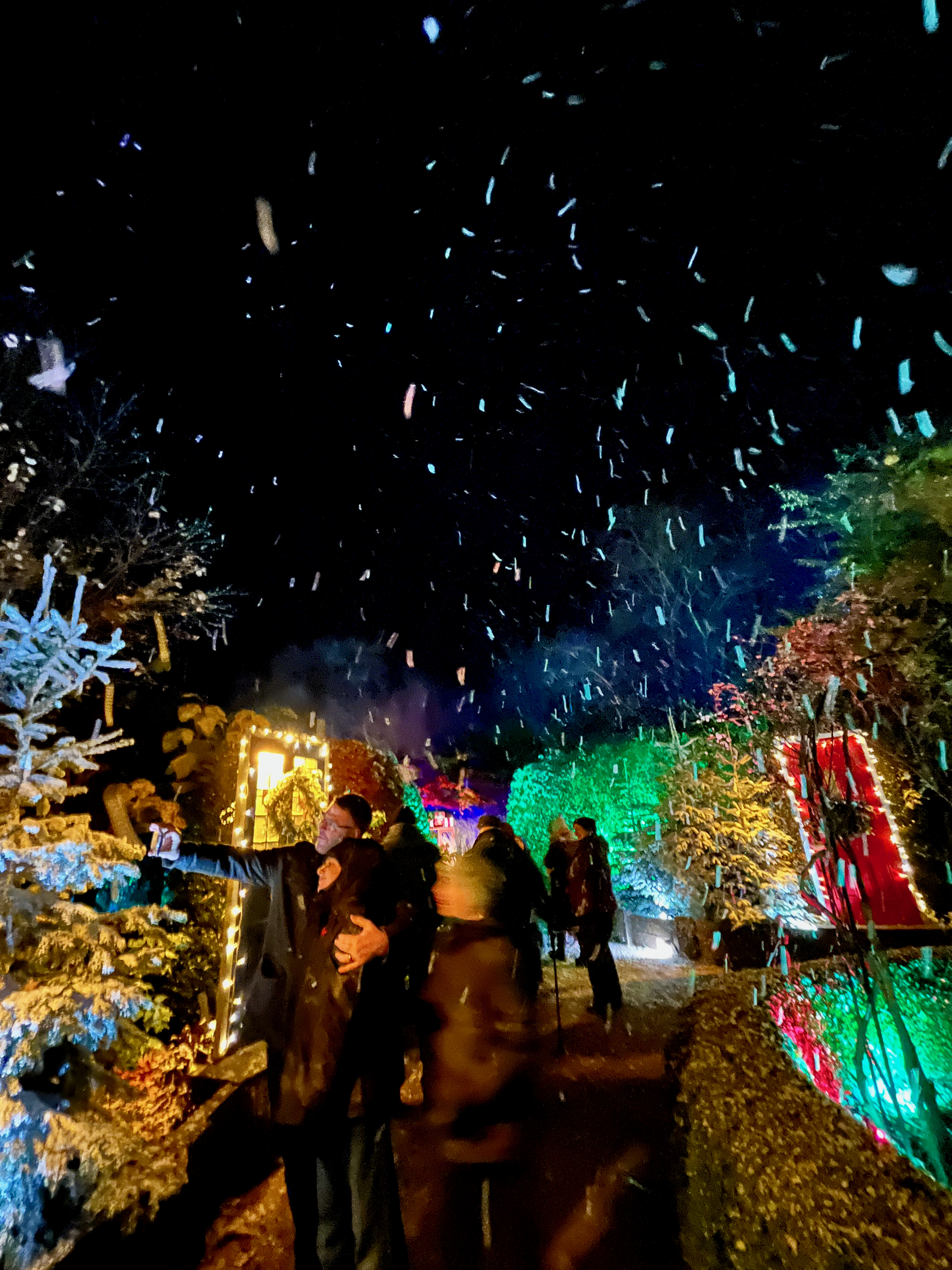There are snow flurries, whatever the weather; mist rises from the ground; there’s the sound of children’s laughter; birdsong echoes from the treetops; there’s a giant glitter ball worthy of TV’s Strictly. And added Elves. Plenty of Elves.