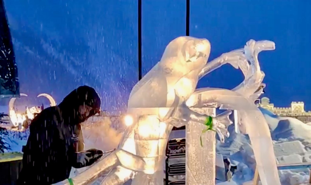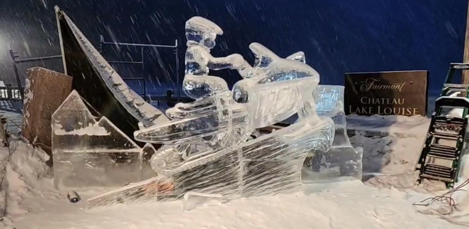 The theme for the event at the Fairmont Chateau Lake Louise hotel is ‘Moments of Bliss in Banff National Park’, and each team had 36 hours to complete their sculptures from 300lb blocks of ice.