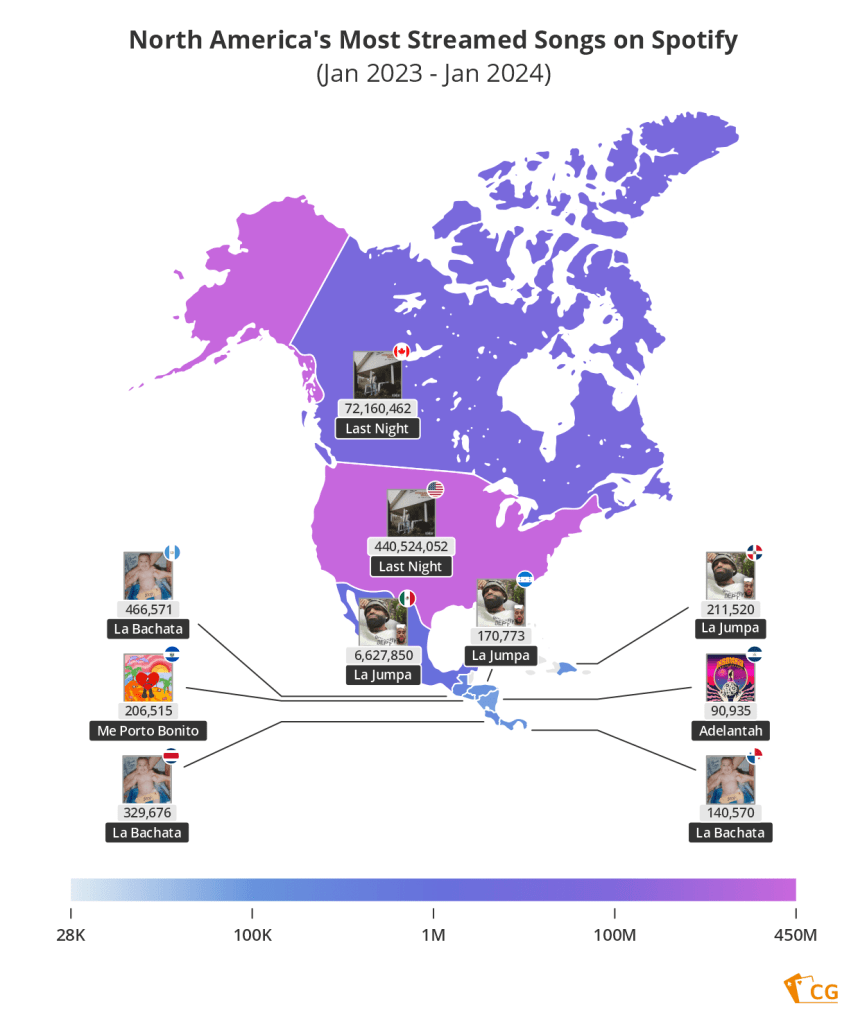 The team at CasinoGuardian analysed streaming data between January 2023 and January 2024 covering 72 countries to discover what we’ve all been listening to the most over the past year.
