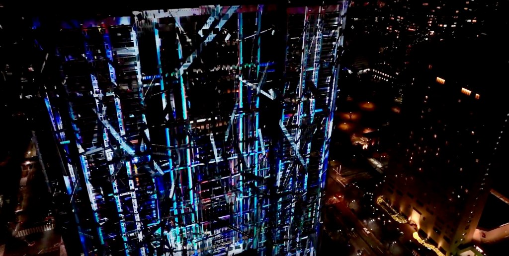 Boffins at Panasonic have come up with the world’s largest permanent display of its kind, using the building as a canvas for a wide range of art accompanied by an atmospheric soundtrack.