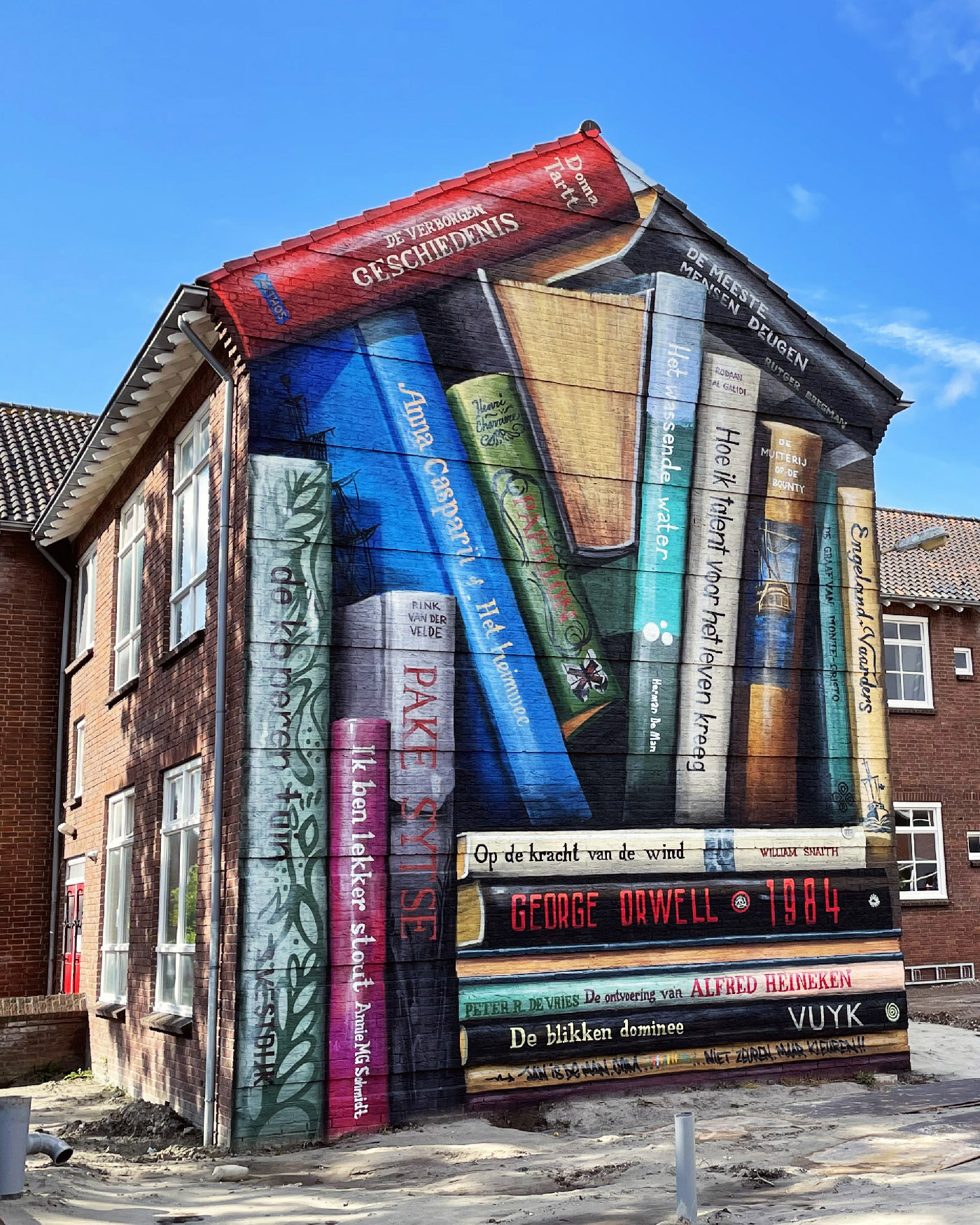 I particularly like this stack of books, one that will delight Bookstagrammers everywhere. It’s named Bookcase III and just part of a wider installation by Jan in the Dutch city of Harlingen. Wonder who chose George Orwell’s 1984?