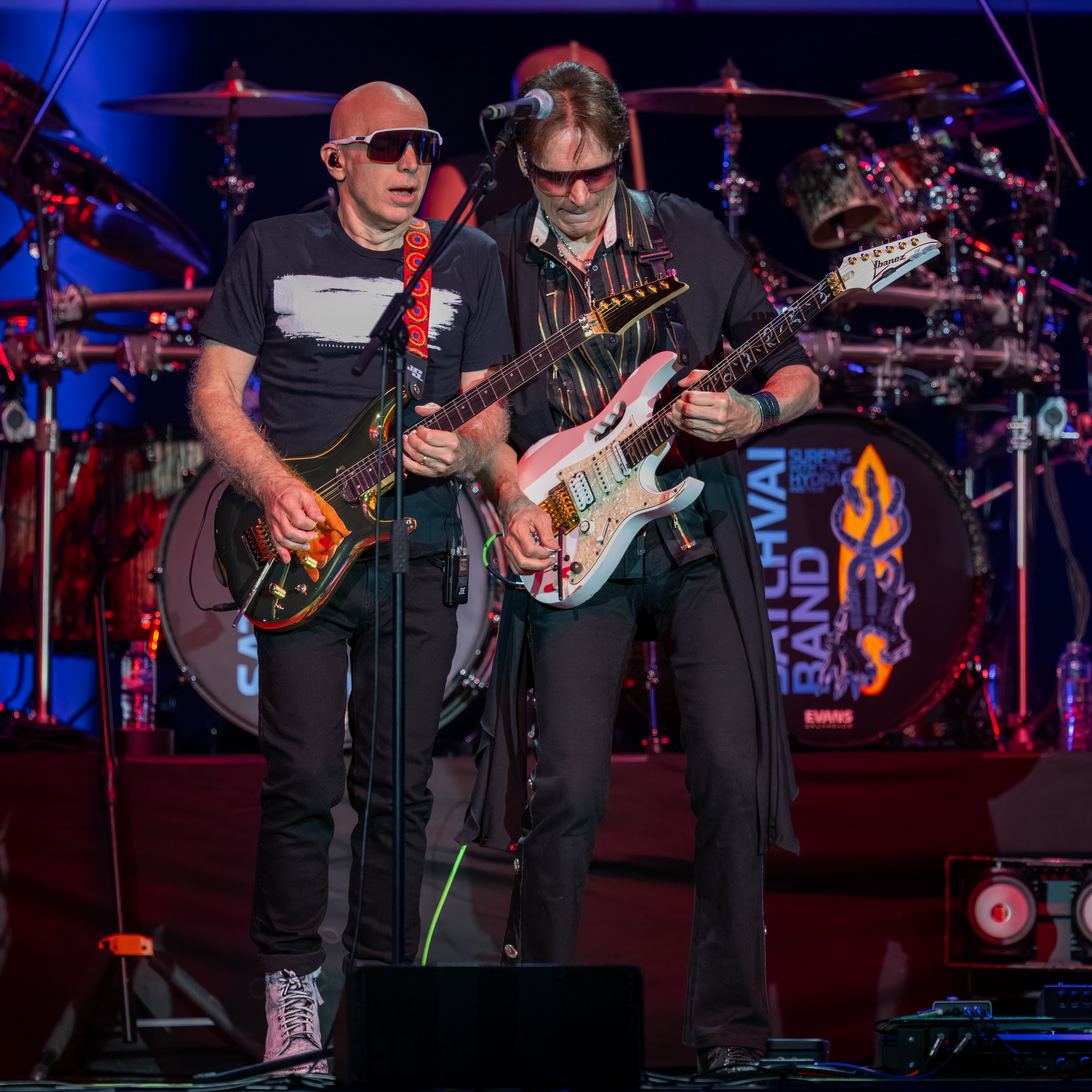 Vai, tall and lean, follows with an urgent Zeus In Chains and Little Pretty, the latter a song that fails to live up to its title and which proves fairly forgettable. Then Satriani returns and the two trade licks in a mash-up of Joe’s Ice 9 and Steve’s The Crying Machine.