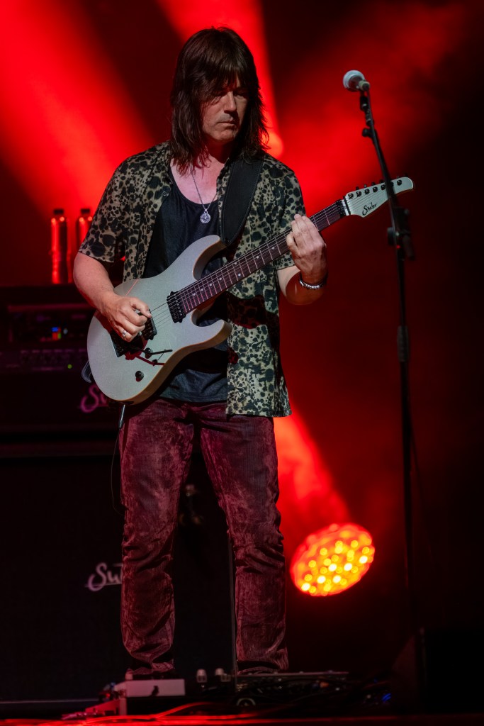It’s only now that the gig begins to take wing. Satriani’s atmospheric Flying In Blue Dream and early breakthrough Surfing With The Alien ignite the crowd, followed by a duet on a sublime Sahara, a Satriani song that fair shimmers with heat.