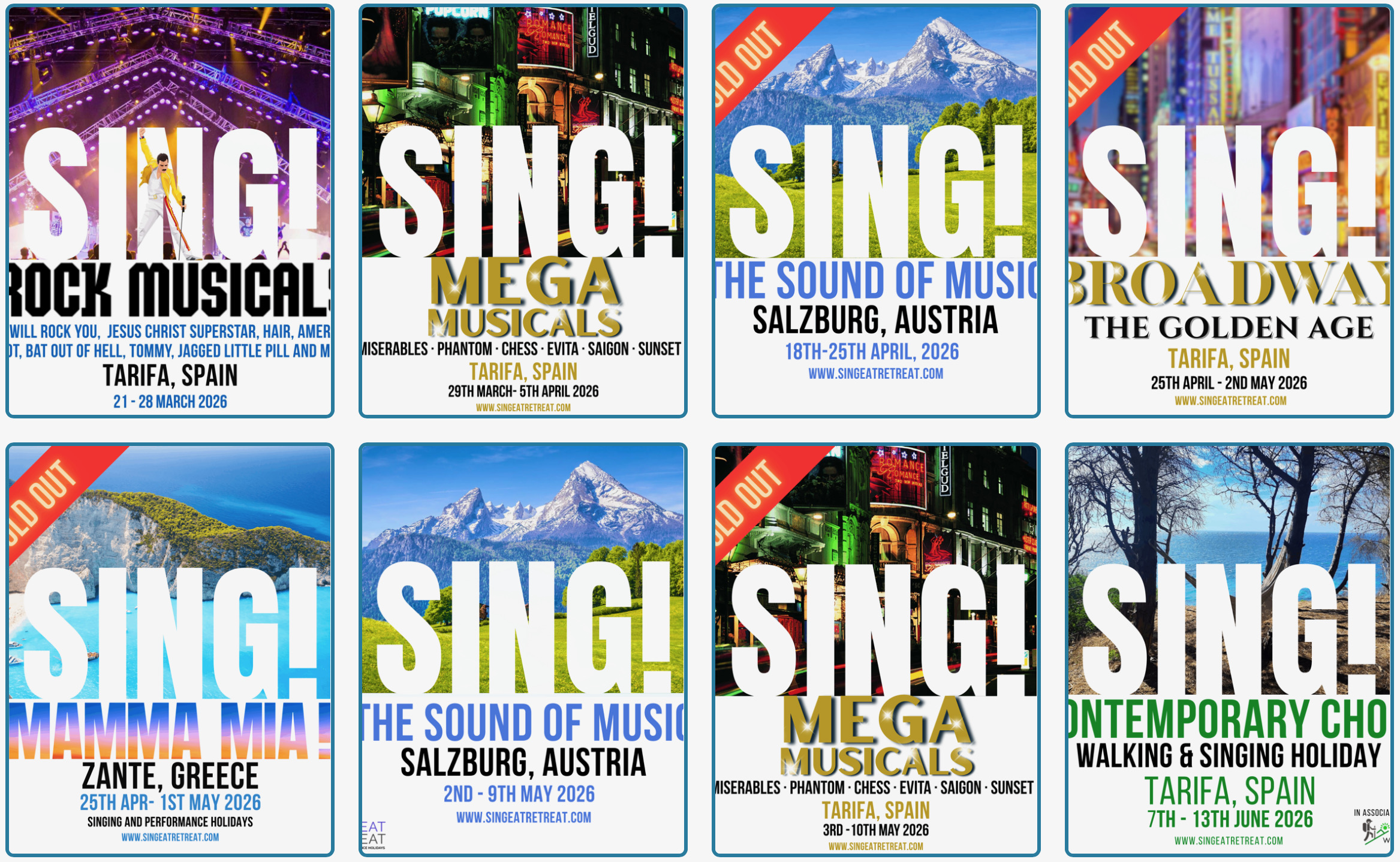 Well, specialist holiday company Sing Eat Retreat may well hit the right notes. They offer fully immersive musical theatre retreats in Spain, Austria and Greece, where you can stretch your vocal cords.