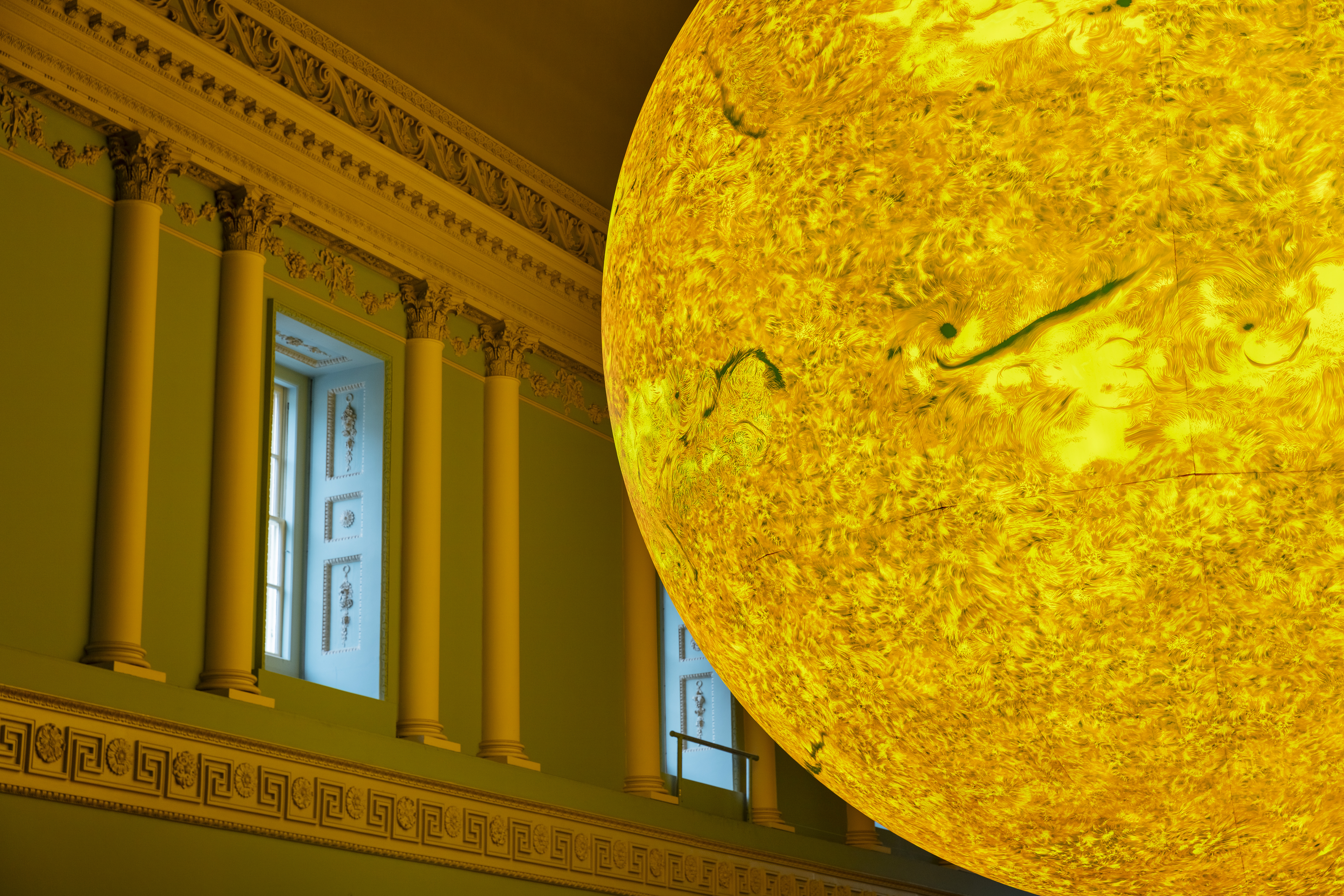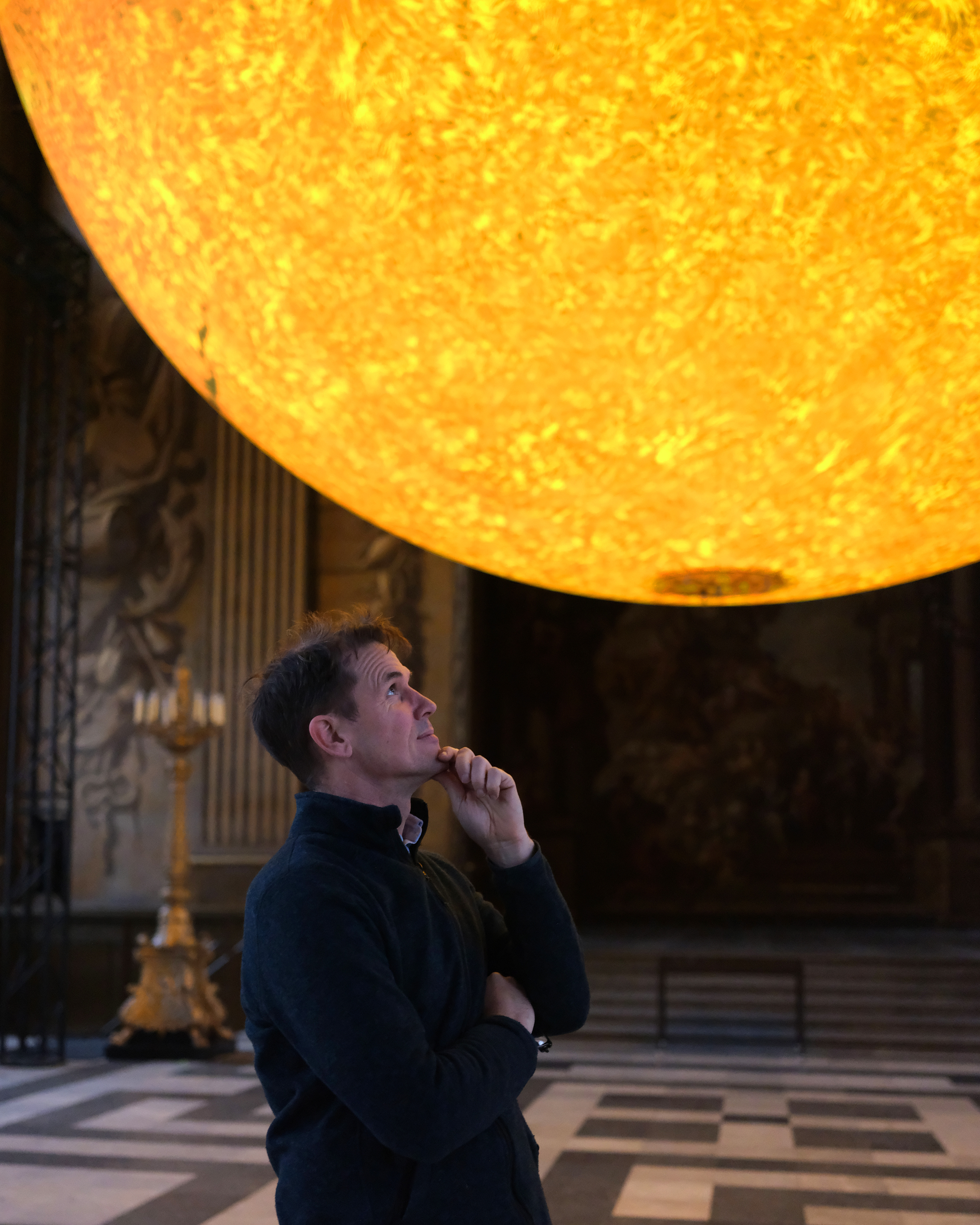 Measuring five metres in diameter, the artwork is 278 million times smaller than the actual Sun, with each centimetre of the internally lit spherical sculpture representing 2780km of the star’s surface.